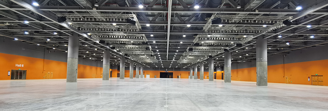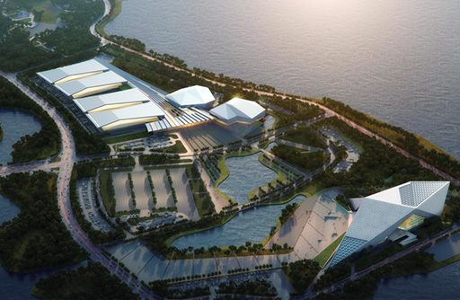 以会展中心为主体,集展览会议与配套商业、酒店、生活服务业态功能、公共服务设施及景观环境等于一体的国际会展综合体。项目总建筑面积达50800㎡,分为约28000㎡会展中心及约11000㎡会议中心,其中室内净展览面积高达15200㎡,会议可使用面积约2554㎡。